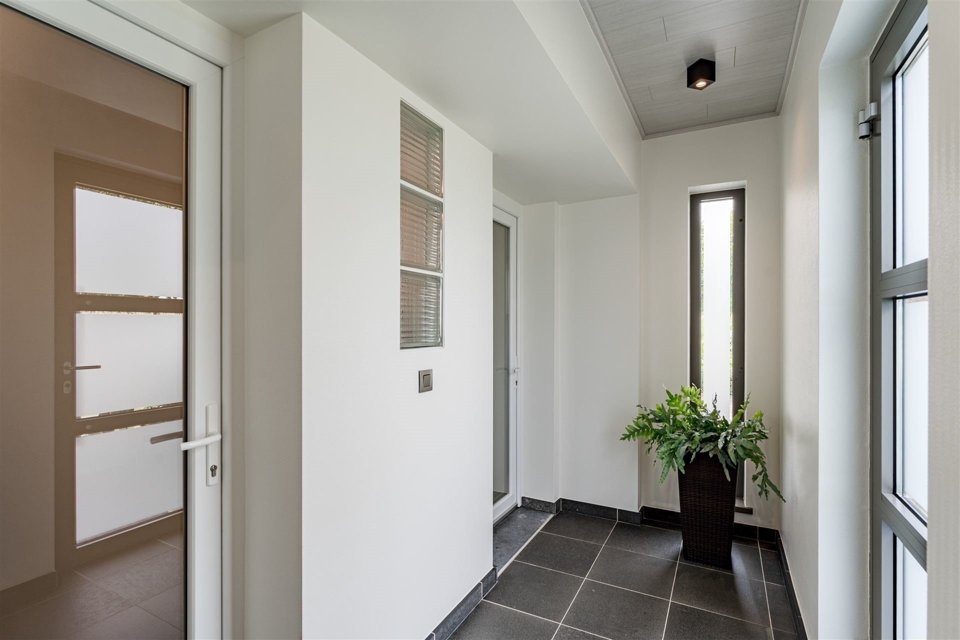 De woningen hebben een kleine gemeenschappelijke inkomhal. Dit gedeelte werd in 2007 bij gebouwd.