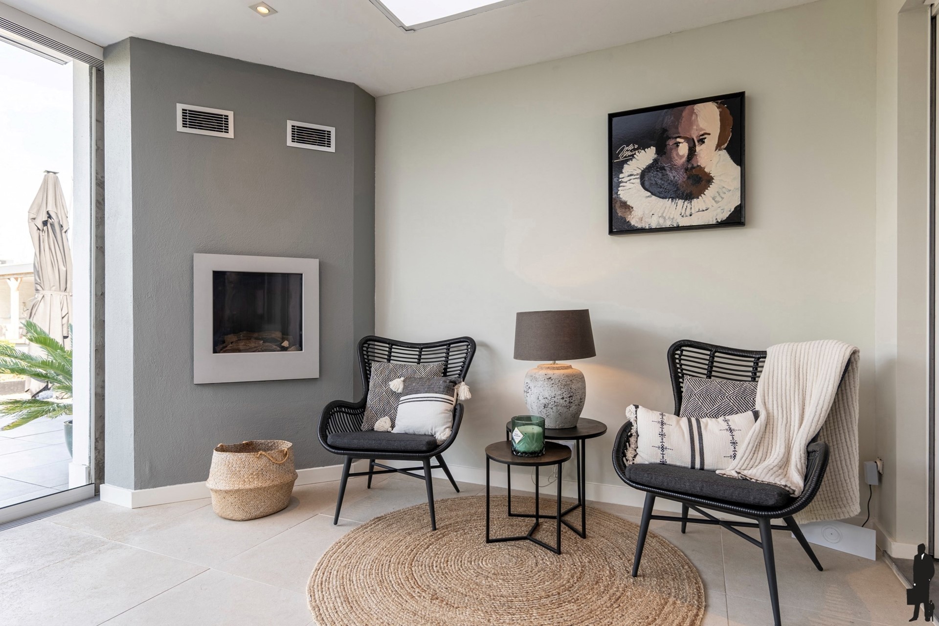 In het tussenseizoen kunt u er comfortabel vertoeven dankzij de geïntegreerde verwarming en gashaard.