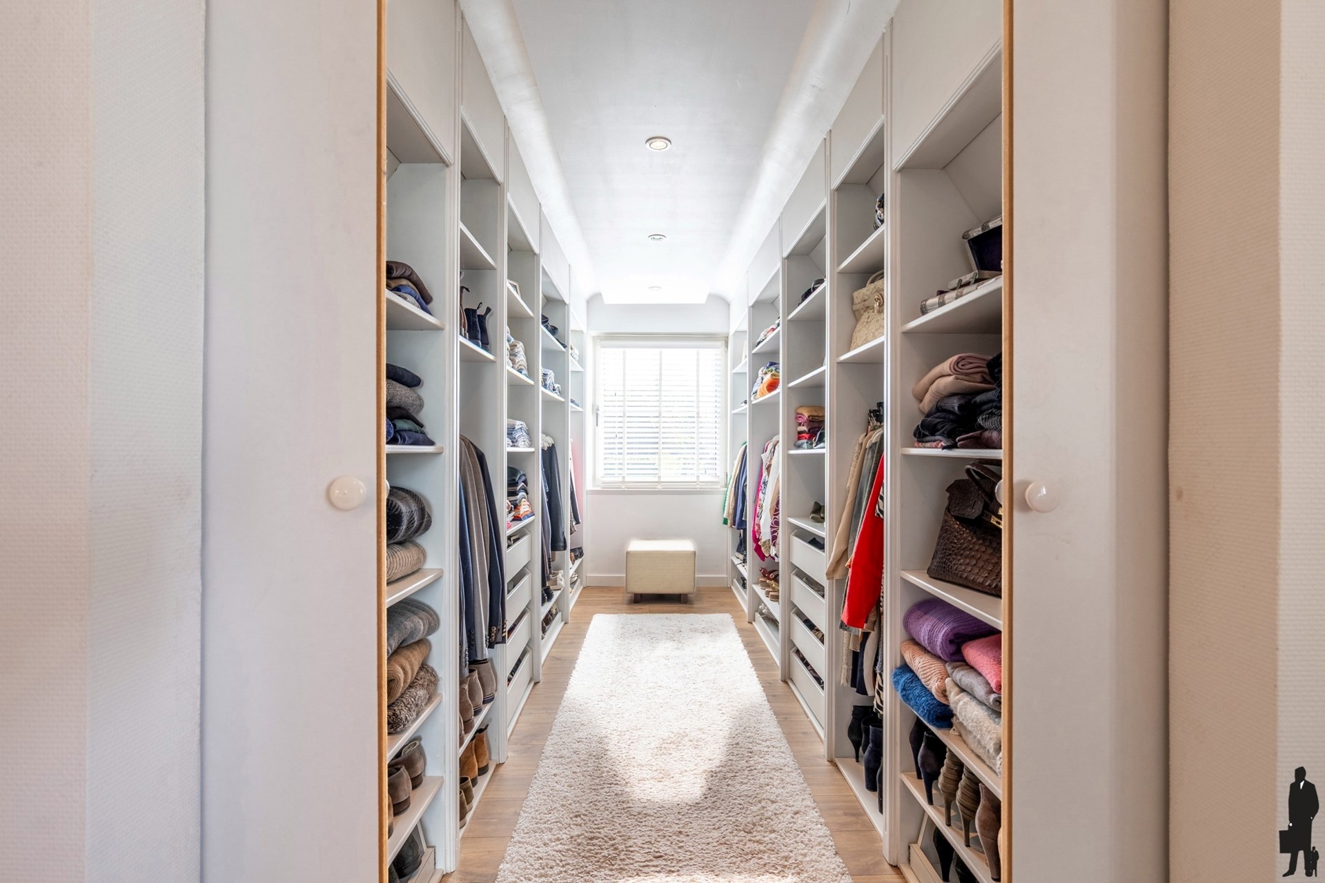 Via de majestueuze trap bereikt u de verdieping, waar de renovatie eveneens tot in de puntjes werd uitgevoerd.