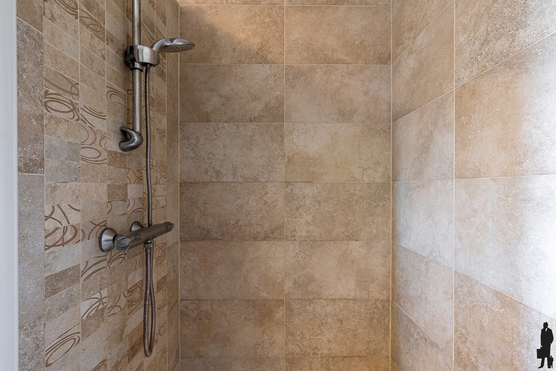 Aansluitend bevindt zich een praktische bijkeuken met wasvoorzieningen en rechtstreekse toegang tot het terras én de inpandige garage.