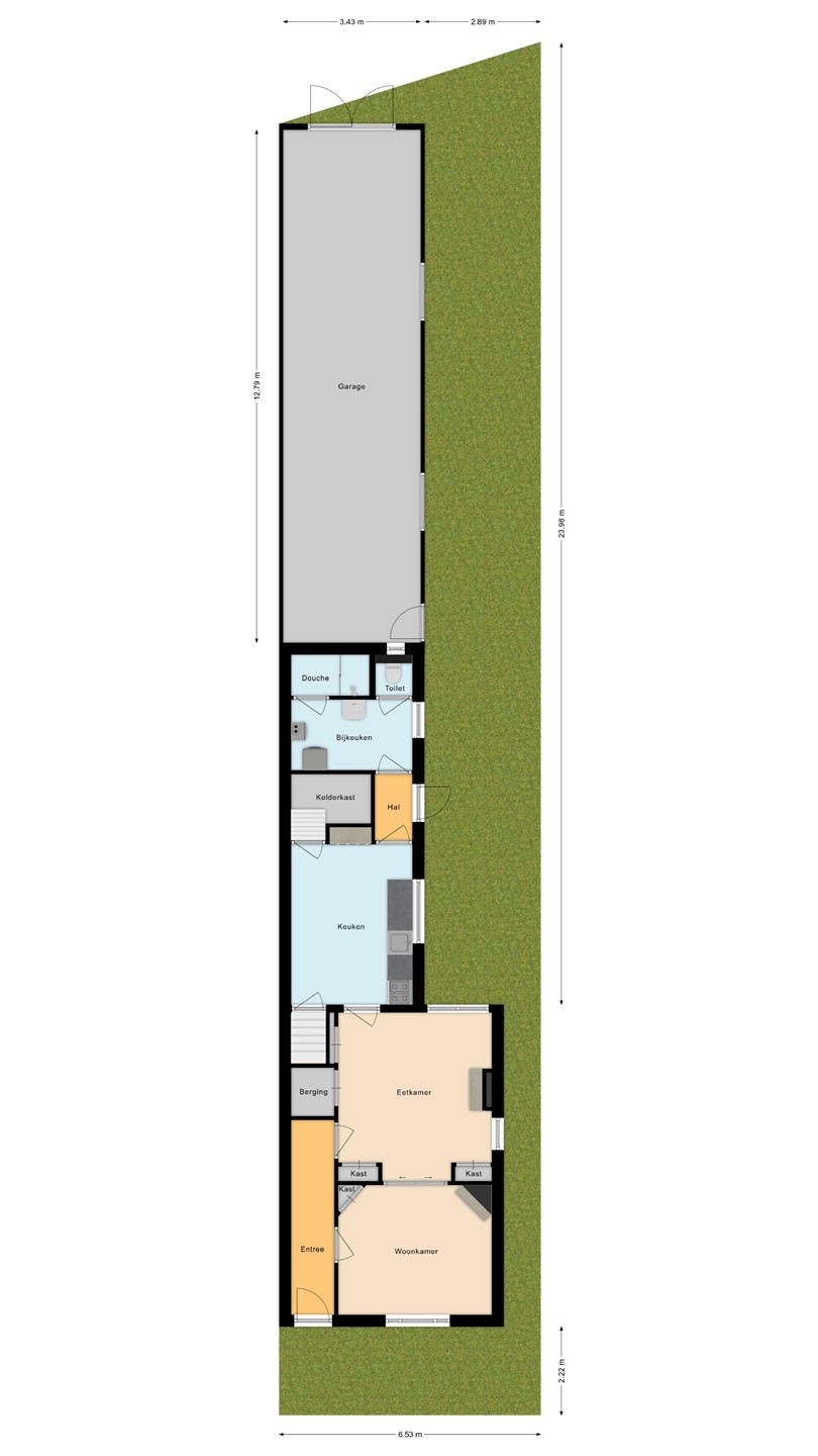 Er is voldoende ruimte om de tuin en garage helemaal naar eigen wens in te richten, bijvoorbeeld een overdekt terras en een garage.