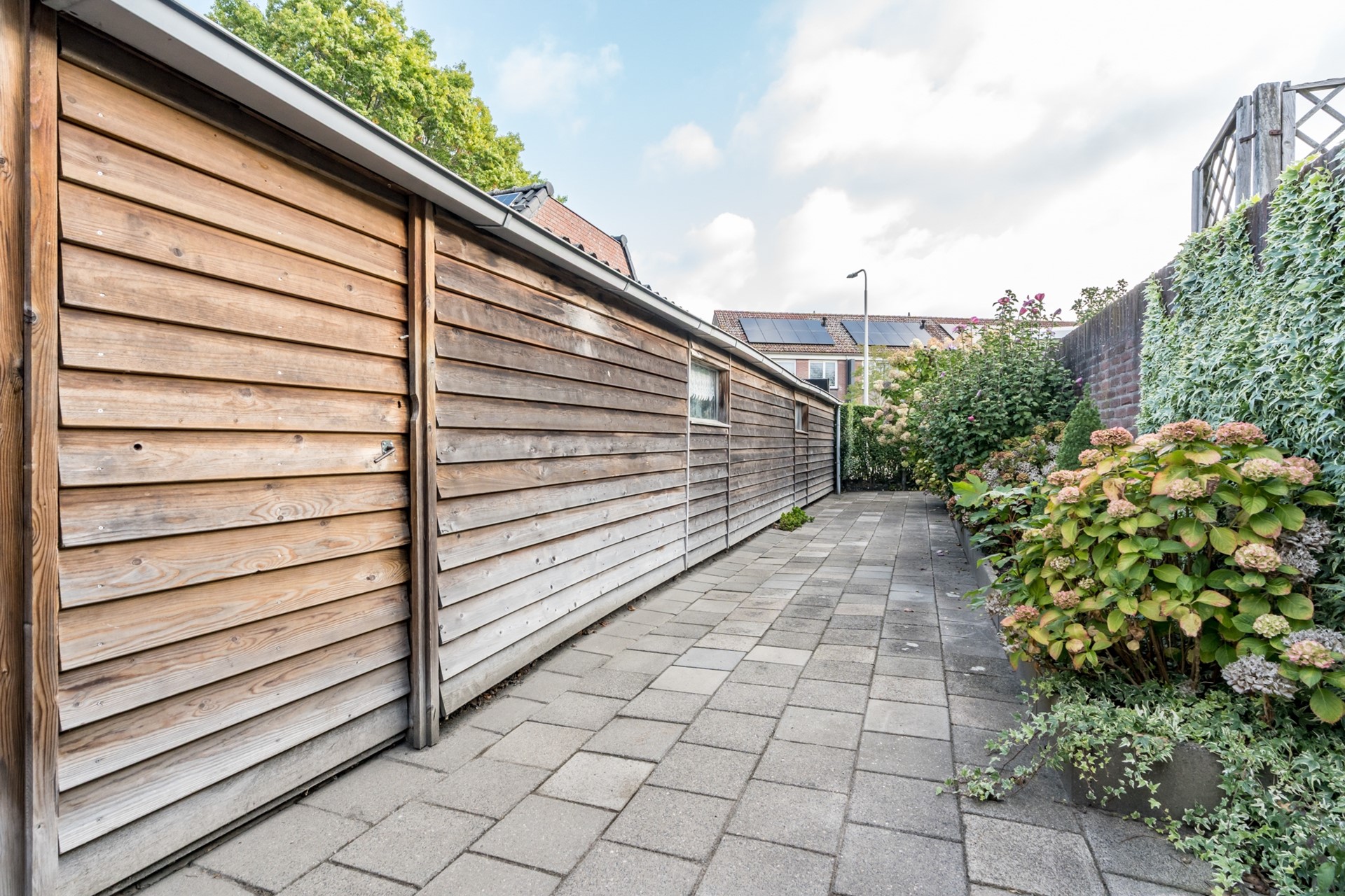 De tuin is maar liefst 70 m² groot en beschikt over een garage van 44 m² met achteringang.