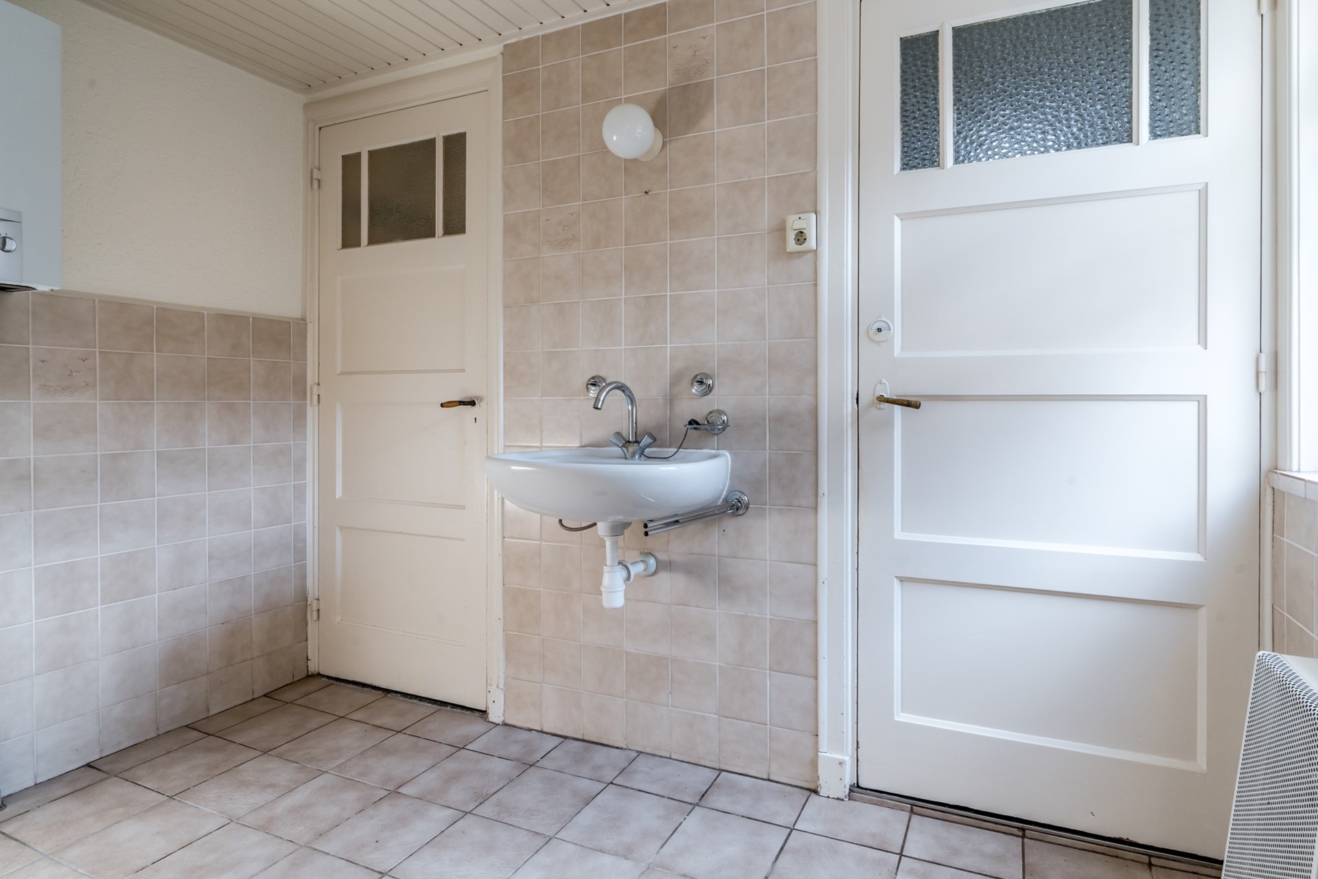 Vanuit de keuken bereik je de bijkeuken, waar tevens een aansluiting voor de wasmachine aanwezig is.
