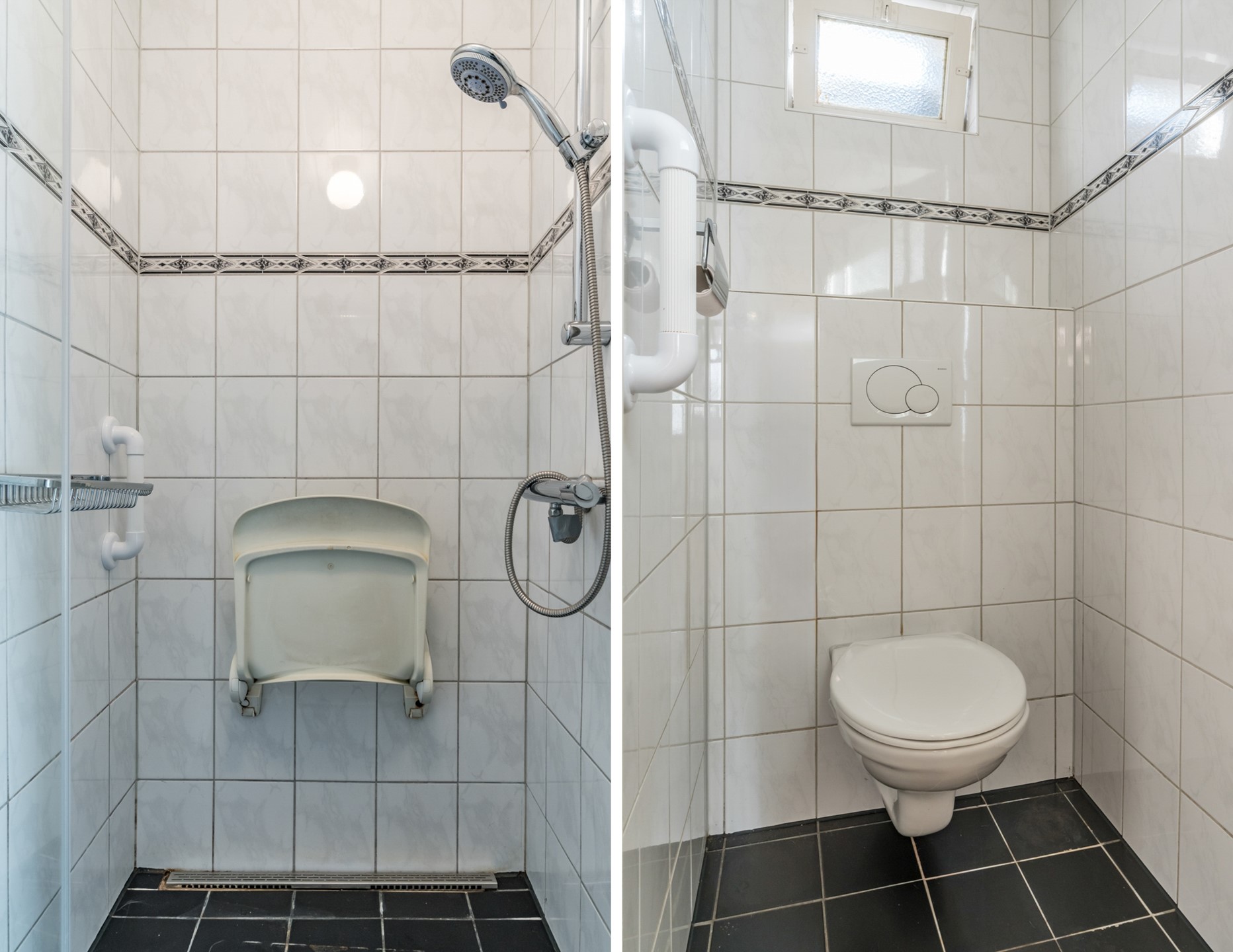 Aansluitend bij de bijkeuken vind je de badkamer, uitgerust met een inloopdouche en wastafel.
